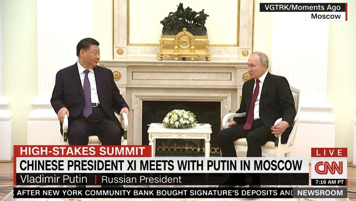 Hi, I'm a tech reporter that covers China, cybersecurity, & new media. Hundreds of people are sharing this photo of Xi Jinping & Vladimir Putin as they meet at the Kremlin. The two did meet, but it's highly likely this photo was generated by an AI program. Here's why: 🧵