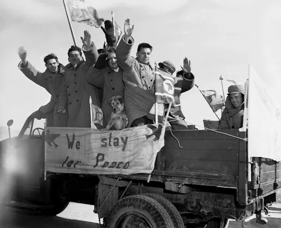 These images were taken on January 28, 1954, as American soldiers prepare to leave the demilitarized zone in Korea and head into the Democratic People's Republic of Korea.
