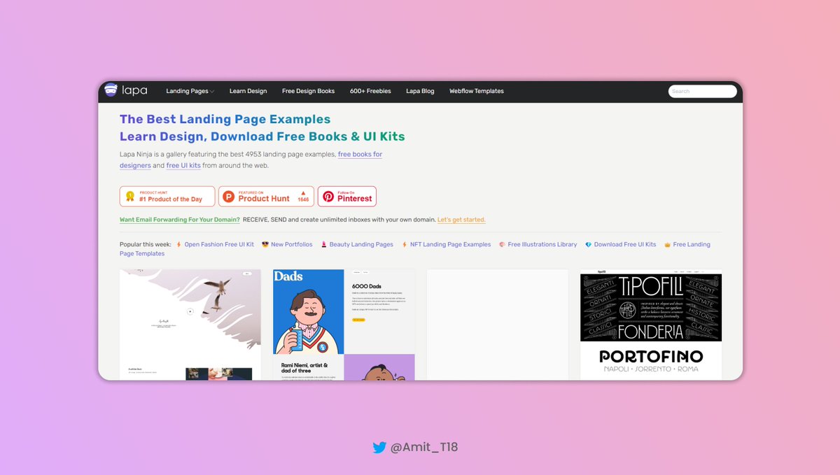 This site has a collection that showcases 4500+ landing page examples and provides many other free resources from all around the web. https://t.co/XaRbT5U0dzlapa.ninja