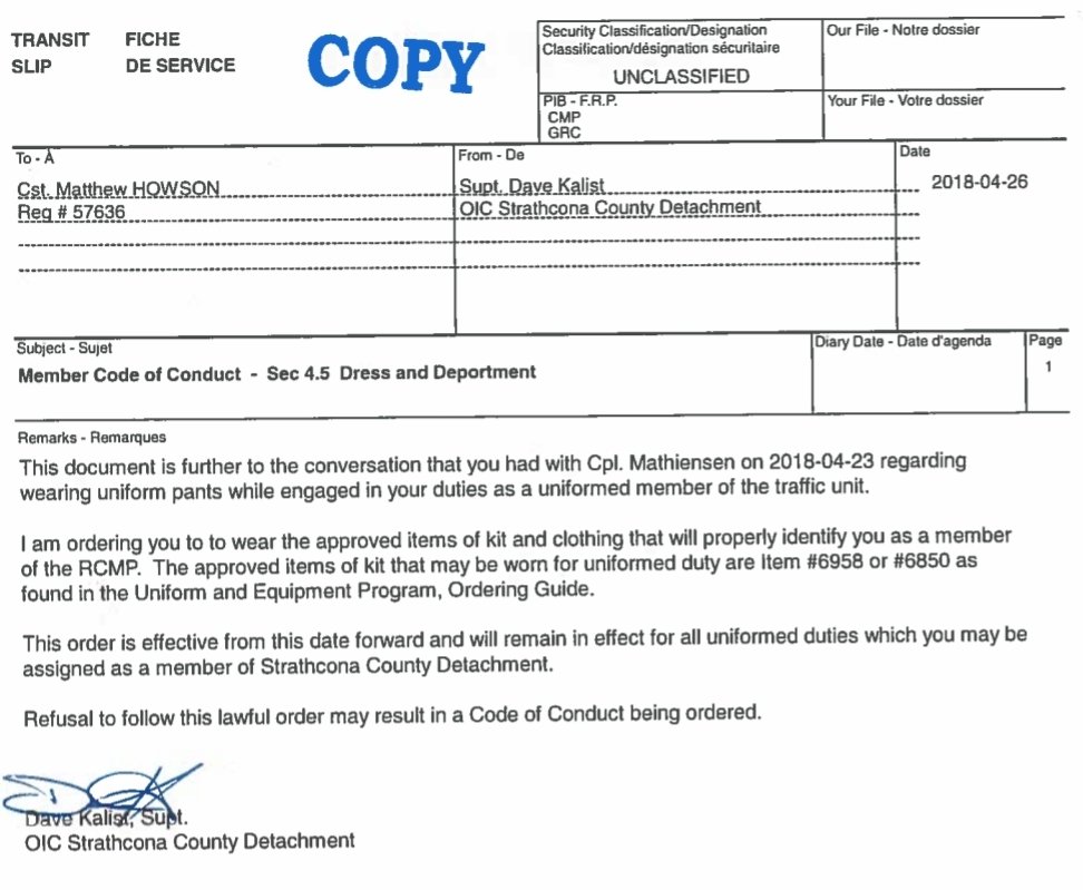 2/ my husband engaged in the yellow stripe movement supported by NPF. The Strathcona County RCMP detachment commander took personal offence to the issue and threatened him with a code of conduct. This issue was already decided by commissioner Bob Paulson and widely known