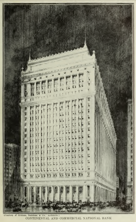 Continental fue el producto de una fusión en 1910 de dos compañías, el Commercial National Bank y el Continental National Bank. Crearon un enorme edificio como headquarters, que cuando finalizó era el edificio de oficinas más grande del mundo.