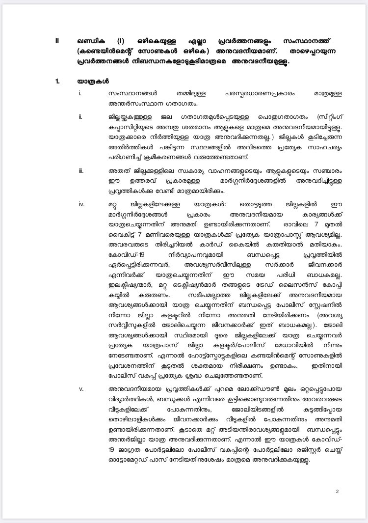 Restrictions will be in force in containment zones alone. Inter-district travel is allowed with an I-card fm 7am to 7pm. But long-distance inter-district travellers must get a pass. Students, close kin& workers stranded before lockdown can travel to join families #COVID19 2/n