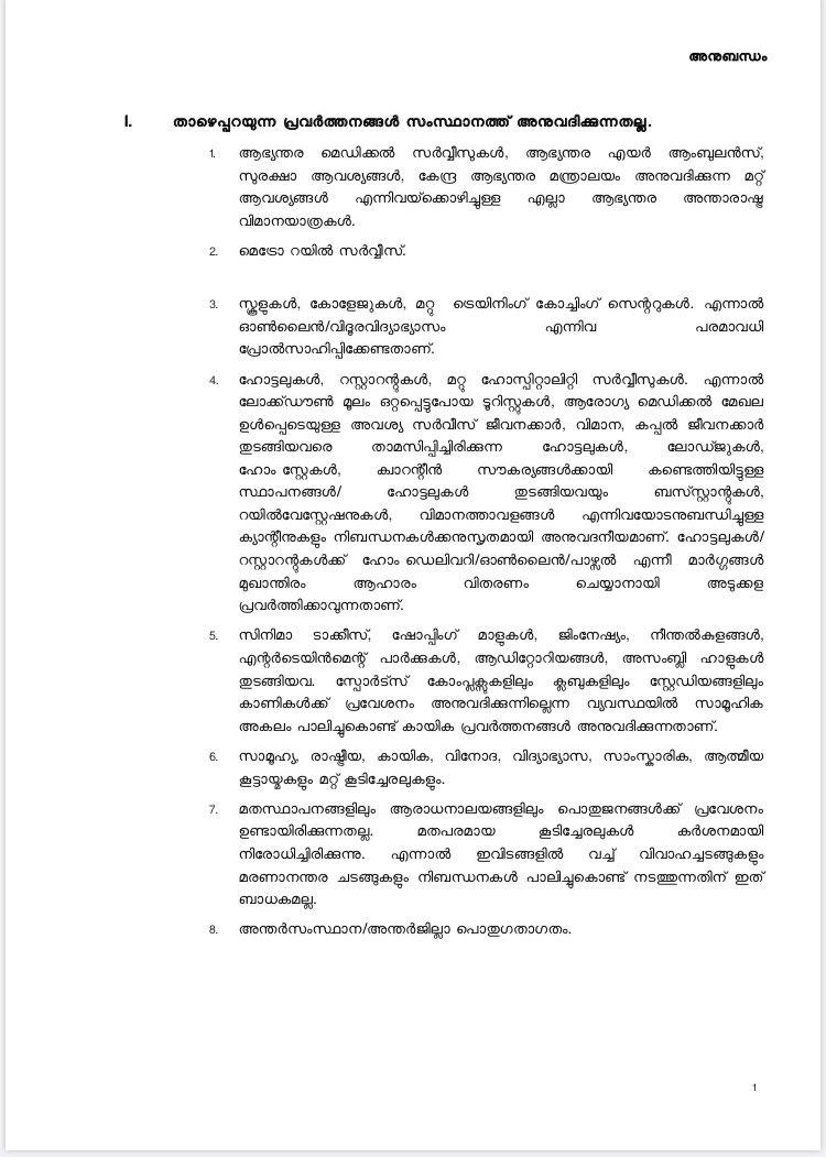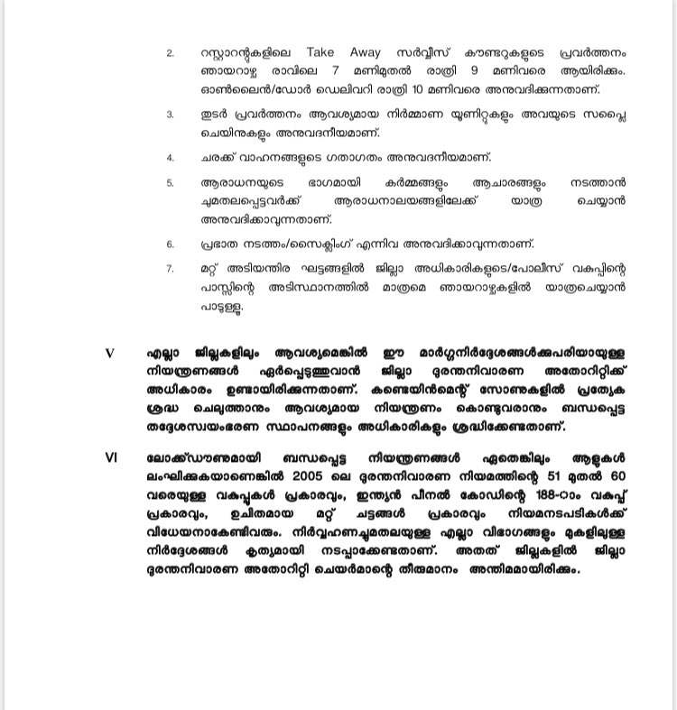 All educational institutions will remain closed but online distance education will be encouraged. Intra-district public transport to be allowed with 50% occupancy & no standing passengers #COVID19#Kerala 1/n