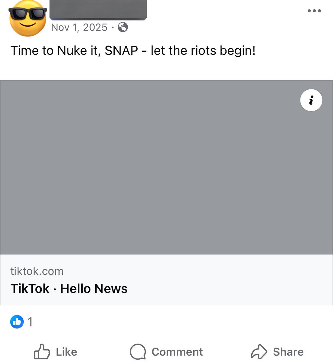 Aside from apparently being a Satanist, he seems to say that he’s “cheering on” Charlie Kirk’s murder, condemns “passive” resistance, calls the Commander in Chief a fascist, and says that he wants to work for ICE payroll and commit espionage by doxxing agents.