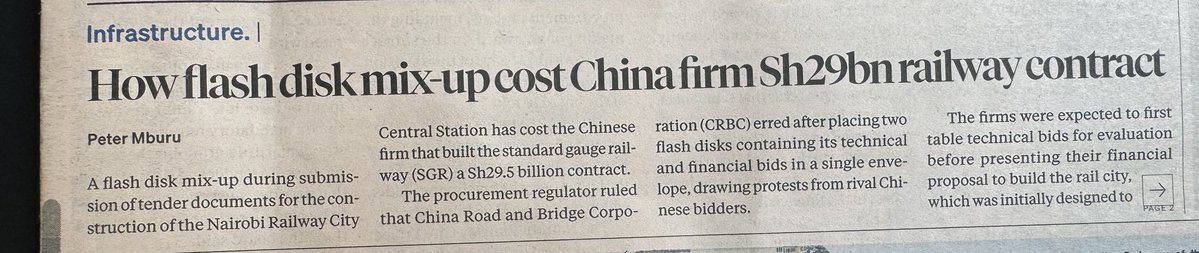 Well, CRBC had already been awarded the contract after getting a technical score of 87/100 and a financial bid of Sh 29.5 billion, against CCECC which got a technical score of 80/100 and bid Sh. 22.9 billion and CRCEG-COVEC which got 81/100 and bid Sh. 32.5 billion.
