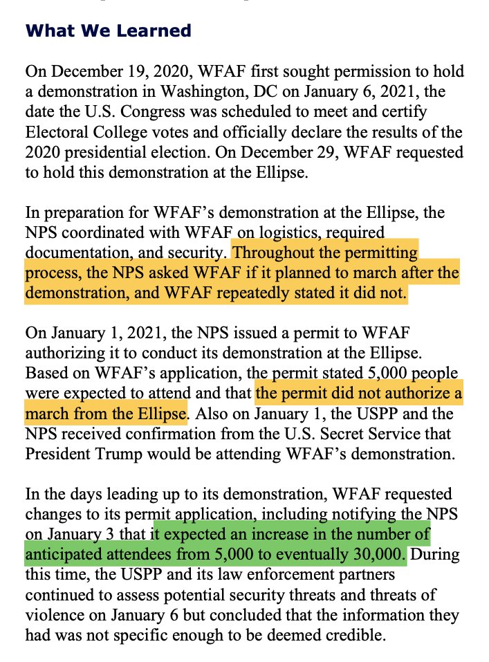 2/ "Throughout the permitting process, the NPS asked WFAF [Women for America First] if it planned to march after the demonstration, and WFAF repeatedly stated it did not."