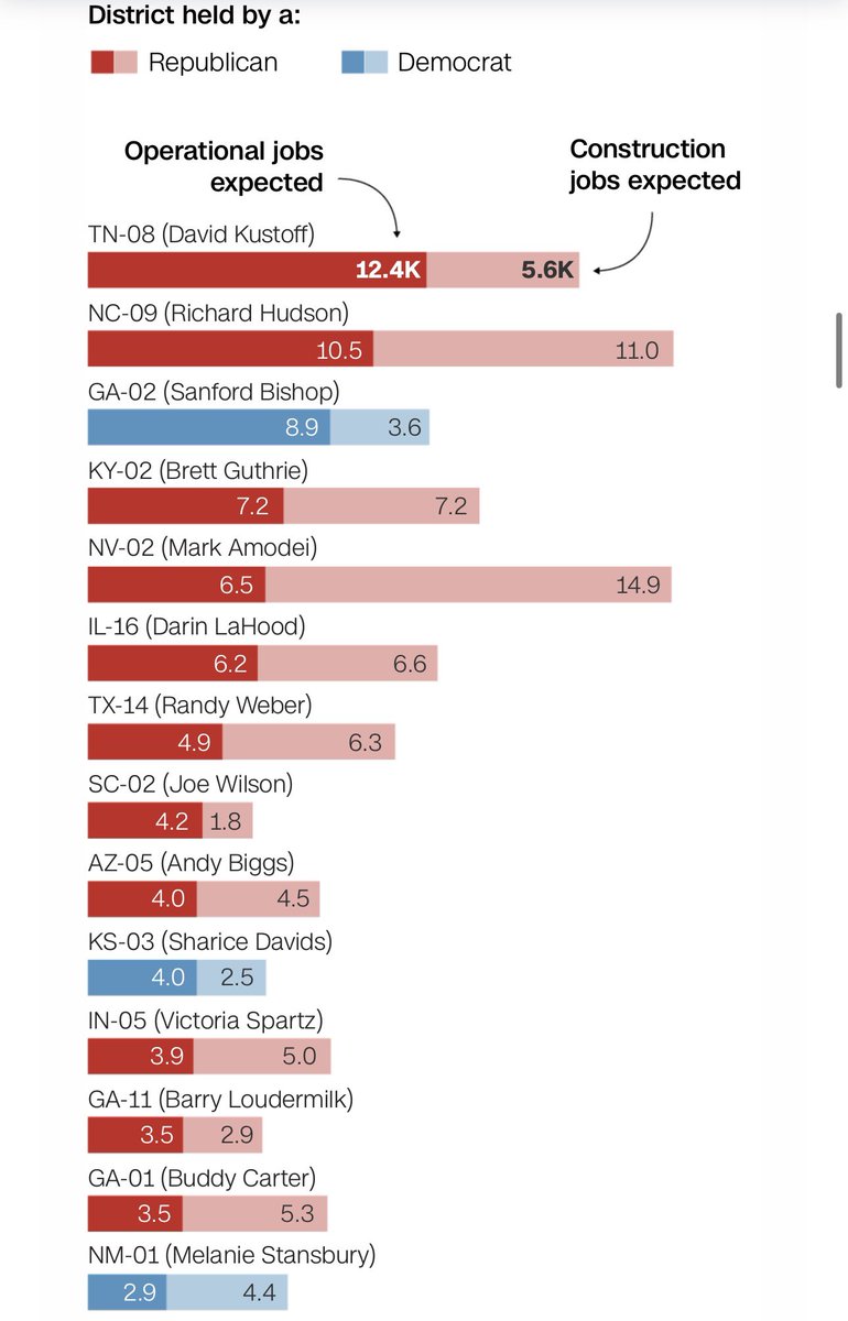 Nearly 80% of the investments from IRA has been in Republican congressional districts. Republicans represent 14 of the top 20 congressional districts that are set to gain the most jobs