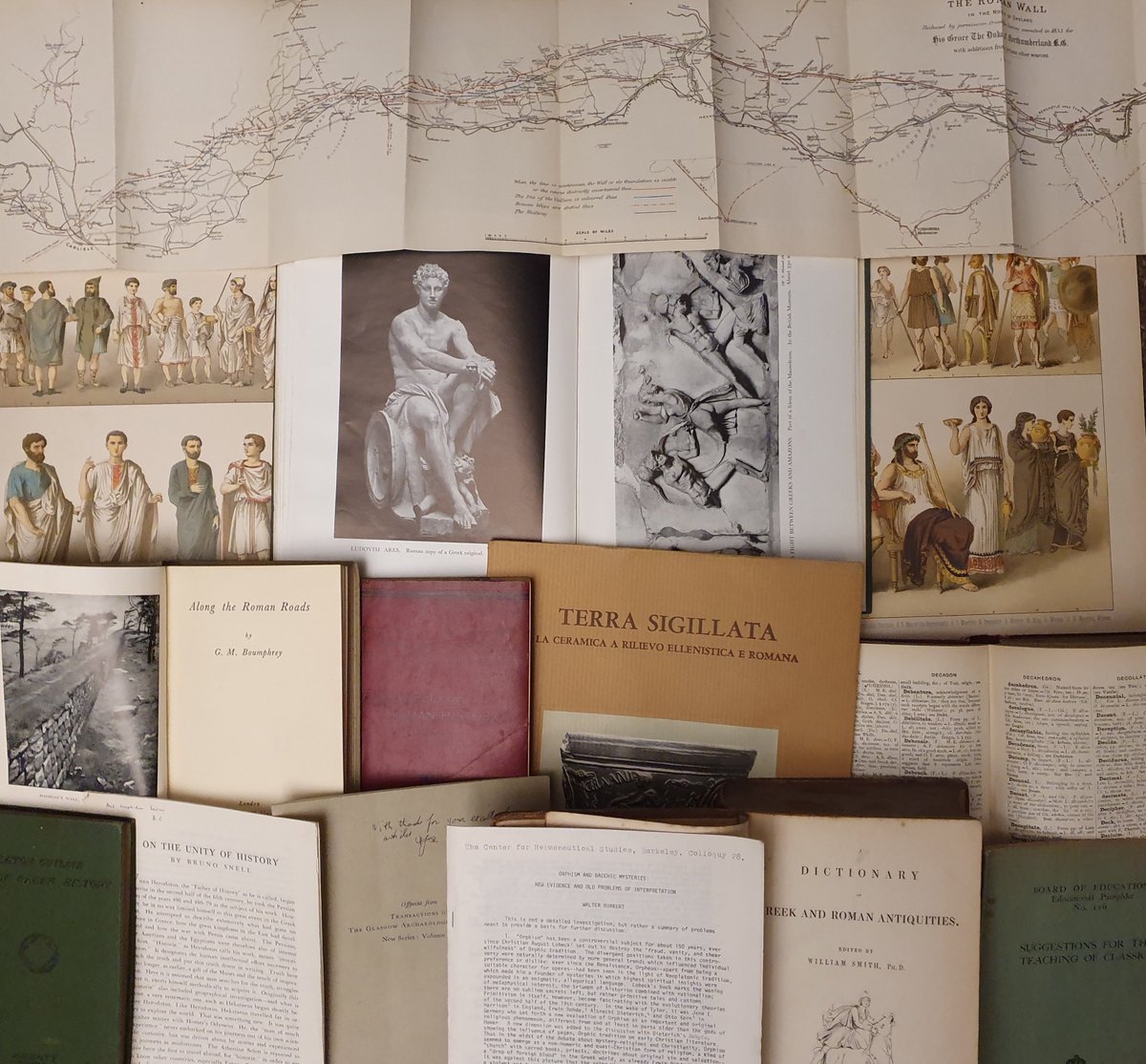 Where to begin? There's Wilkinson's Greek Sculpture (London, 1936), which has 100+ plates (owned by the archaeologist Frank Stubbings); there's Smith's Dictionary of Greek and Roman Antiquities (1850s), plus two romantic reconstructions of Greek and Roman dress from 1882...