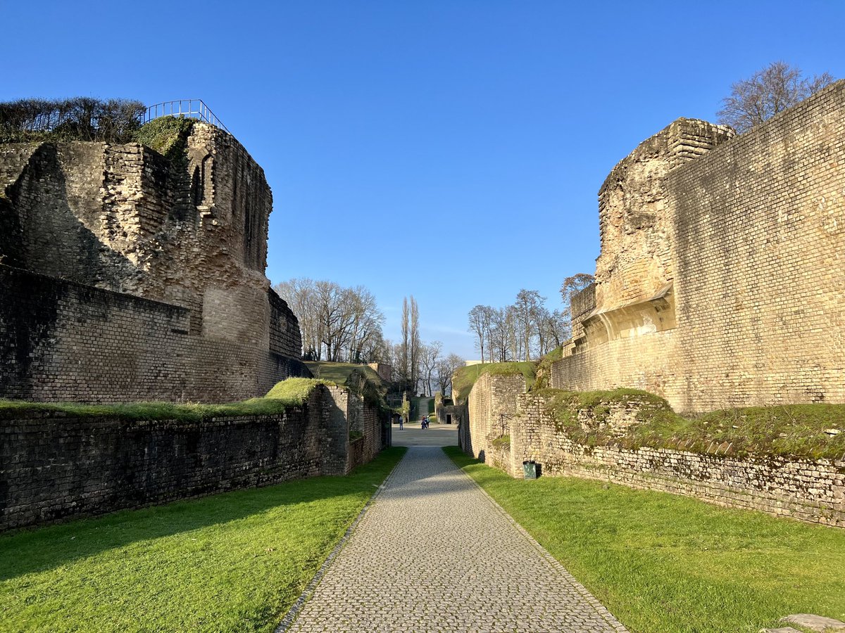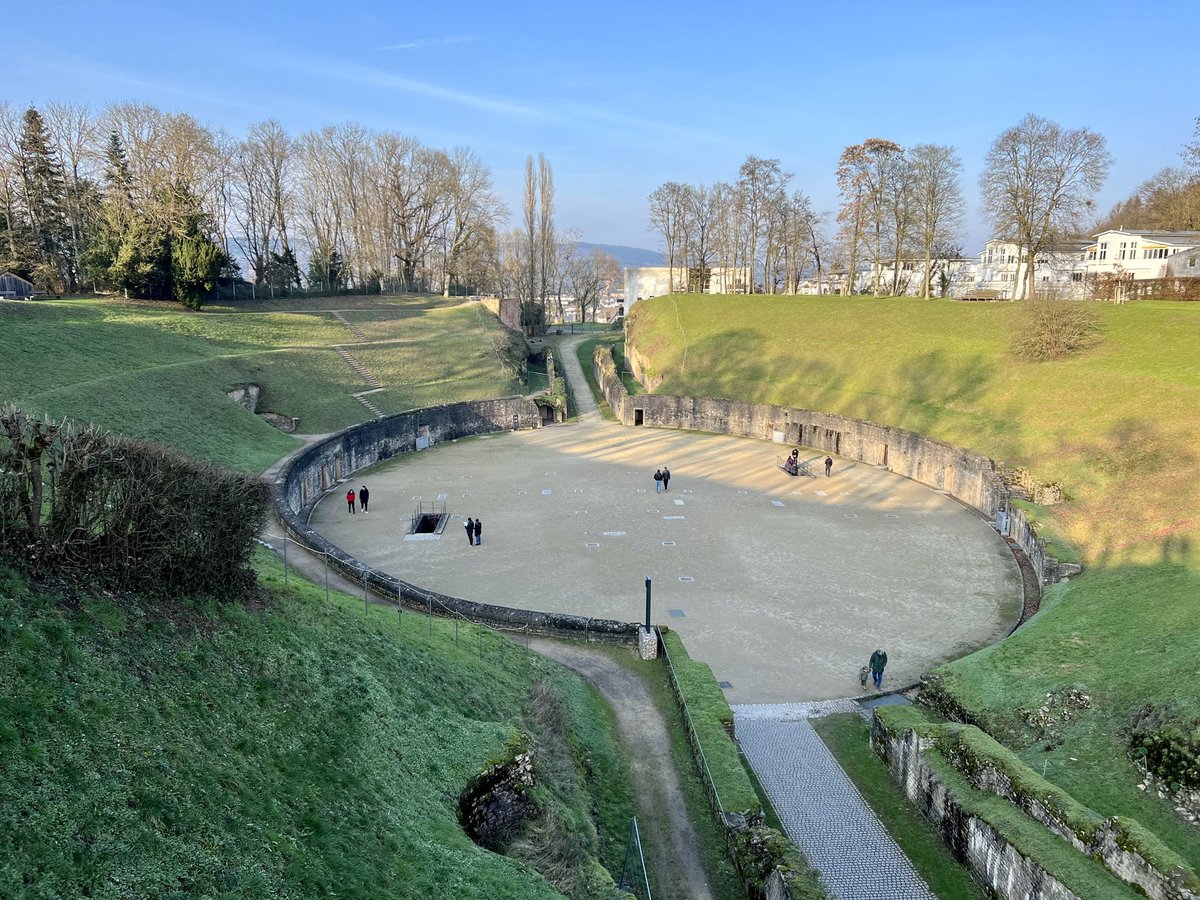 The amphitheatre doubled as a gate to the city, the Roman wall running around the seating and staggering the two entrances to face into and out of Trier.