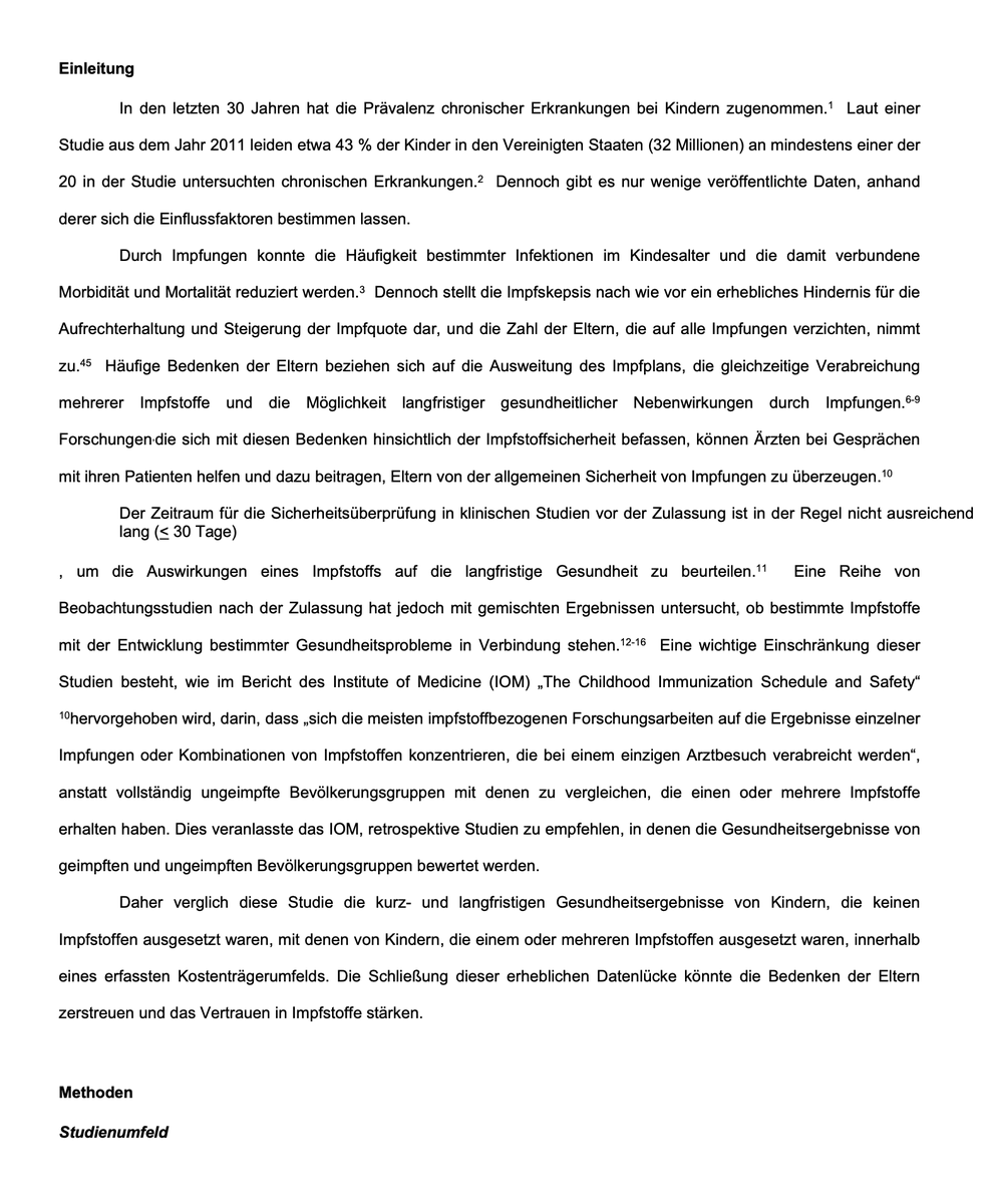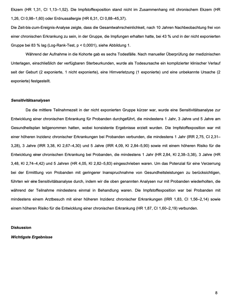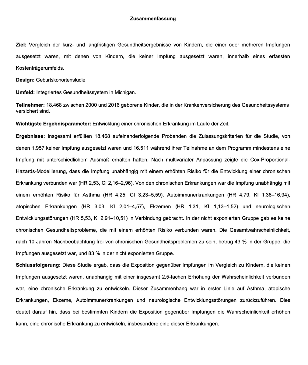 Nach zehn Jahren waren 83 % der ungeimpften Kinder gesund, aber nur 43 % der geimpften Kinder blieben frei von chronischen Erkrankungen (Kaplan-Meier-Kurve auf Seite 19 der Studie).