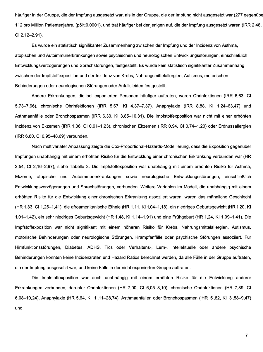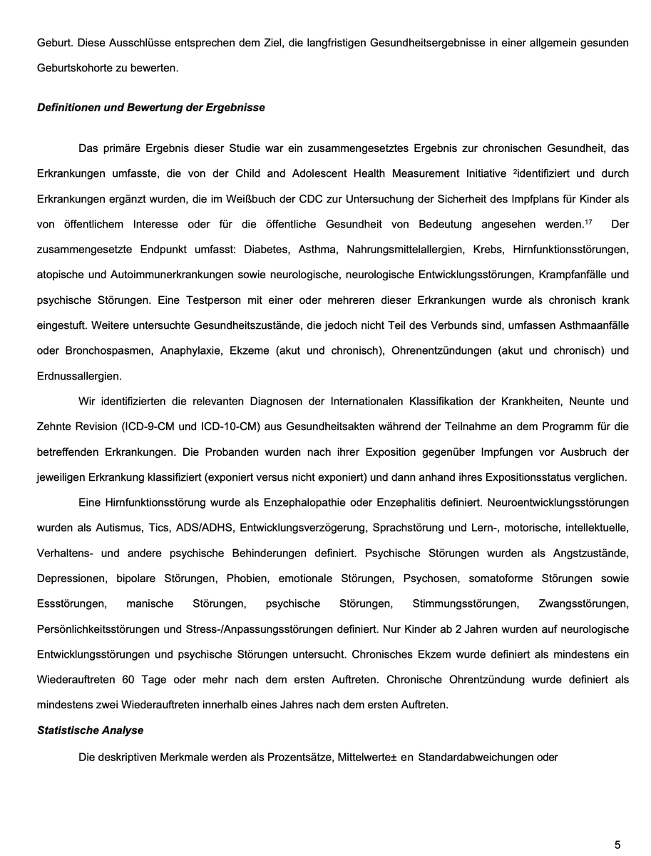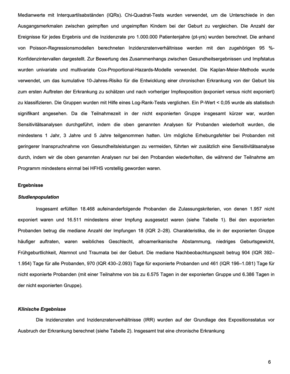Nach zehn Jahren waren 83 % der ungeimpften Kinder gesund, aber nur 43 % der geimpften Kinder blieben frei von chronischen Erkrankungen (Kaplan-Meier-Kurve auf Seite 19 der Studie).
