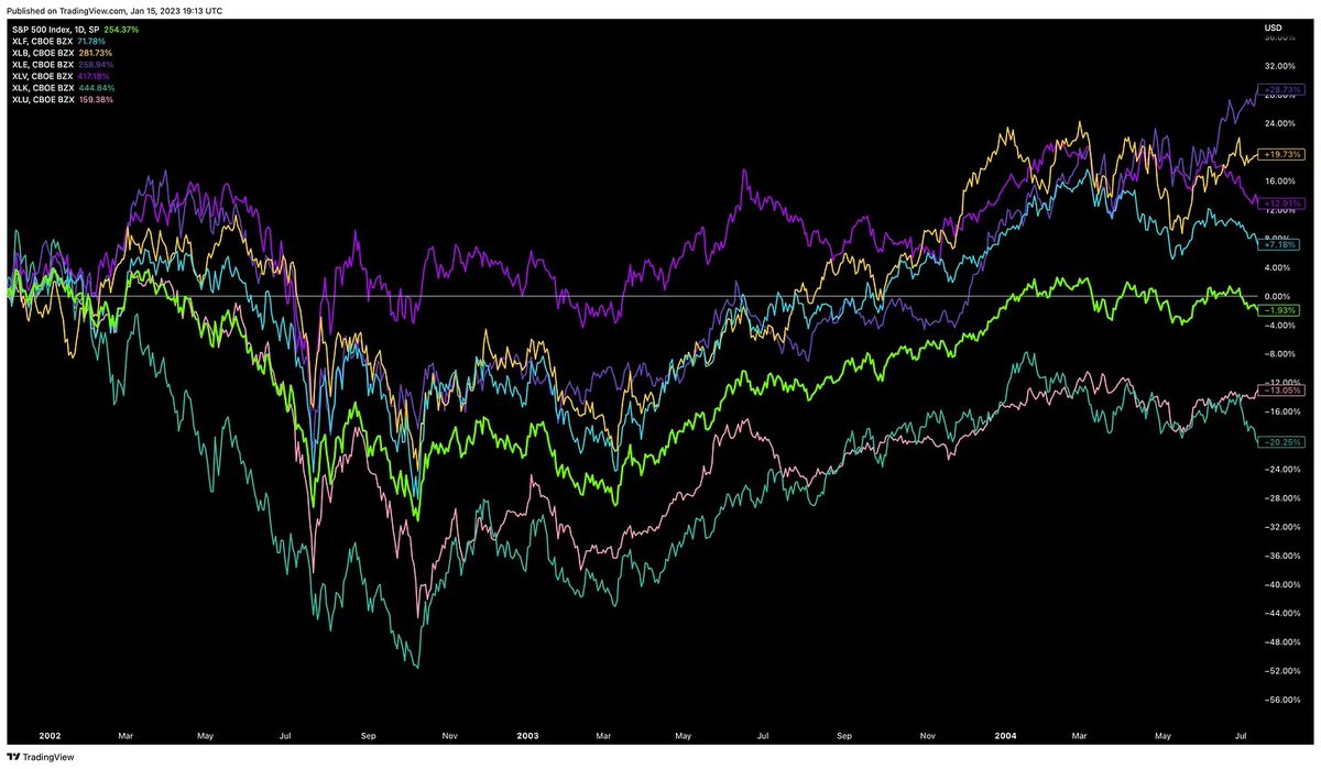 This leads us to took at the sectors that lead coming out of similar situations. the closest situation we have to the technology boom bust is 2000.π§΅ $SPY