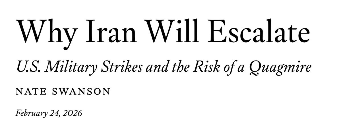 4 días antes del ataque del 28/02, Swanson publicó un artículo en Foreign Affairs explicando por qué y cómo Irán escalaría la guerra, que es lo que está sucediendo.