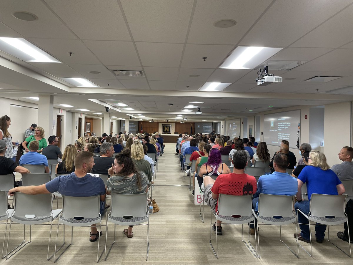 At the Brownsburg Schools emergency meeting, recommending the district reinstate a mask mandate. We're been going 10 minutes and had two crowd outbursts. Board chair is reading policy around public comment before that portion starts.