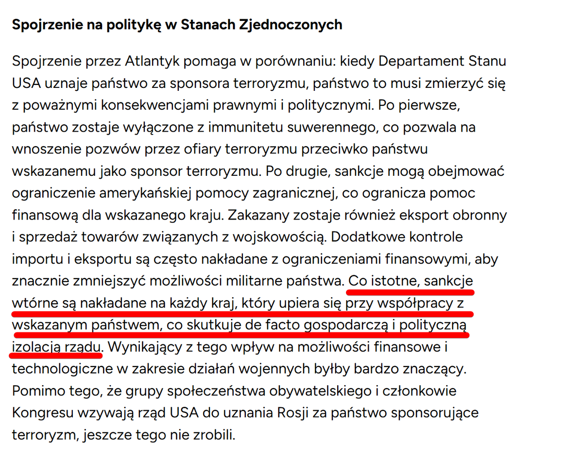 Ogłoszenie przez stany Rosję państwem sponsorującym terroryzm można by uznać za opcję atomową.