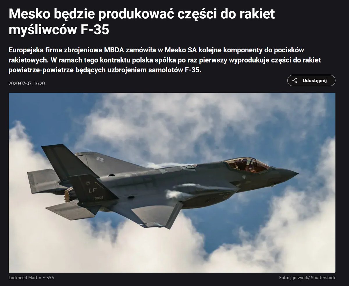 F-35 i współpraca z USA – Polska jest zaangażowana w program produkcji myśliwców F-35, w ramach którego nie tylko zakupuje sprzęt, ale również wytwarza pewne jego elementy zgodne z technologią stealth. Amerykanie uznają, że Polska ma odpowiednio wykwalifikowaną kadrę.