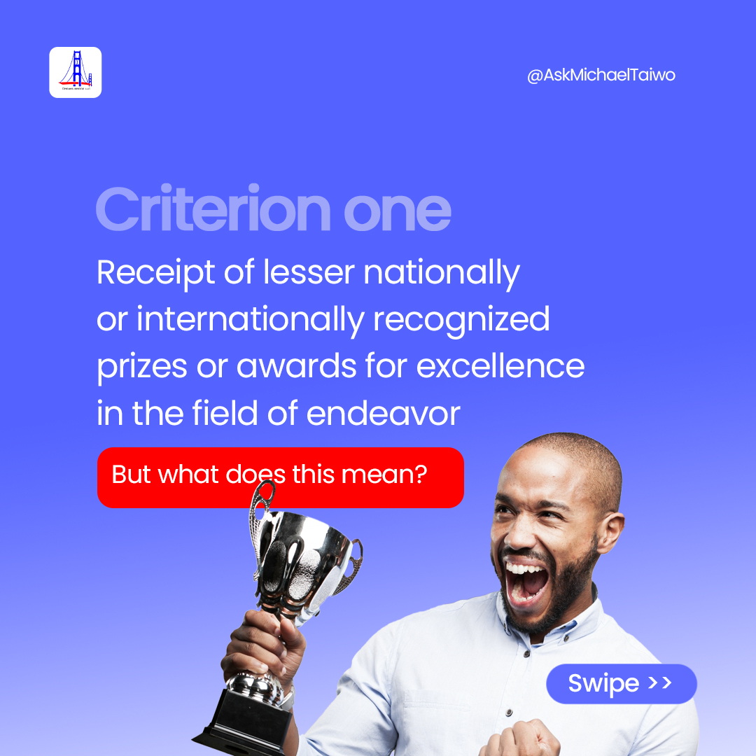 In determining whether an applicant satisfies Criterion 1, the USCIS first checks if such applicant was a recipient of a lesser prize/award. Then, it proceeds to check if the lesser award is nationally or internationally recognized and was received on the basis of excellence.