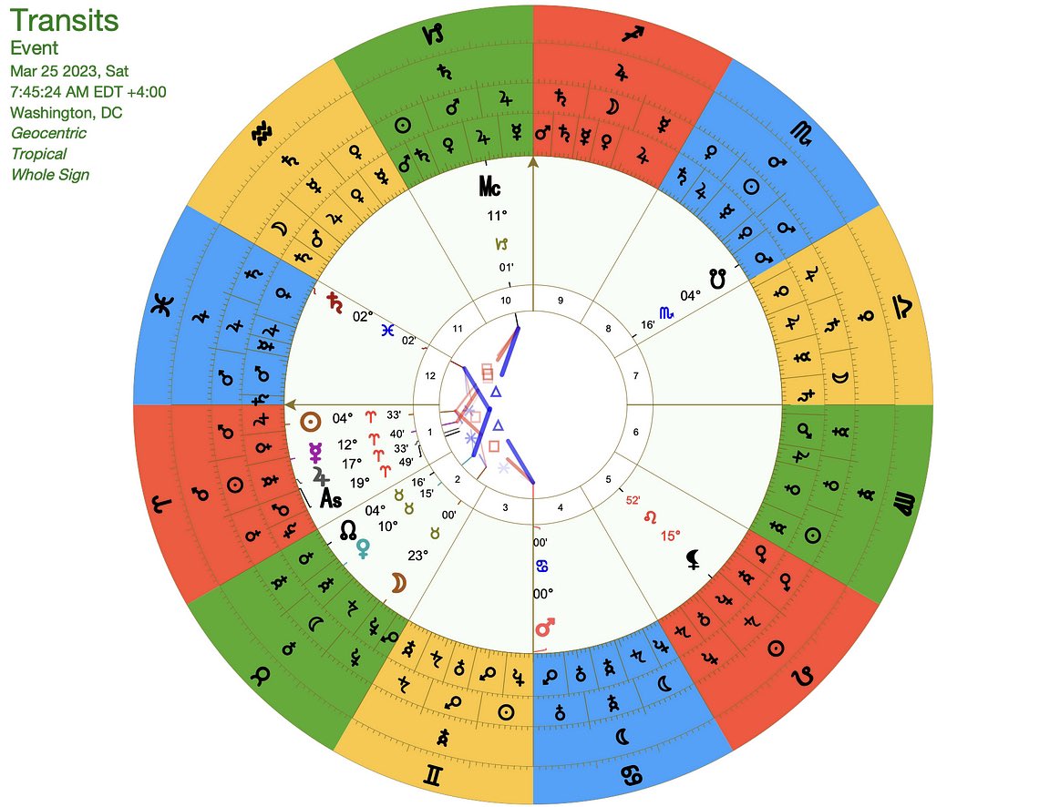 https://twitter.com/CarlosGSmith/status/1636015545085460480There is no confirmed time for him, but I just know that this Saturn opposition will be a period of a lot of hardship, restrictions, and limitations for him personally. He has Saturn in Virgo so I’m keeping my eye on him and his chart for the next 3 years