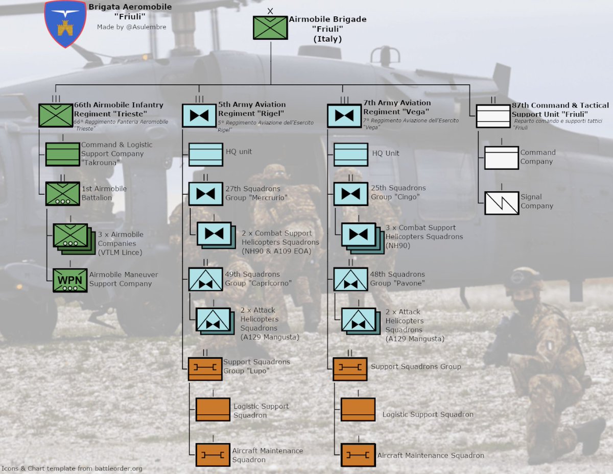 1/ The Brigade is part of the Division "Vittorio Veneto" which also contains the Paratrooper Brigade "Folgore".
