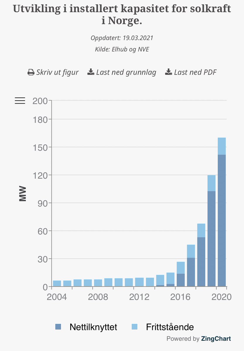 1/ Litt bakgrunn først. Solenergi står for ca. 0TWh av ca. 155TWh kraftproduksjon. Null altså, hvis man ikke tar med desimaler.