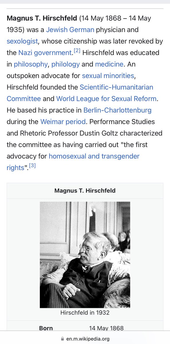 1. Magnus Hirschfeld: Founded the Institute for Sexual Research in Berlin, which conducted the earliest research on sexuality and gender. Hirschfeld created the first scientific theories about transgender identities - “Father of Transgenderism”