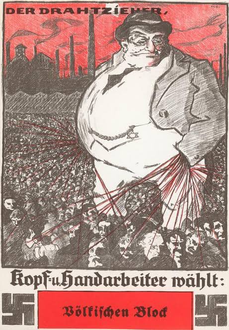 In Germany between 1918 and 1933 Jews were 0.78% of the population but were 16% of the doctors, 15% of the dentists, 25% of the lawyers, 50% of the theatre directors and occupied 80% of the leading positions in the Berlin stock exchange.