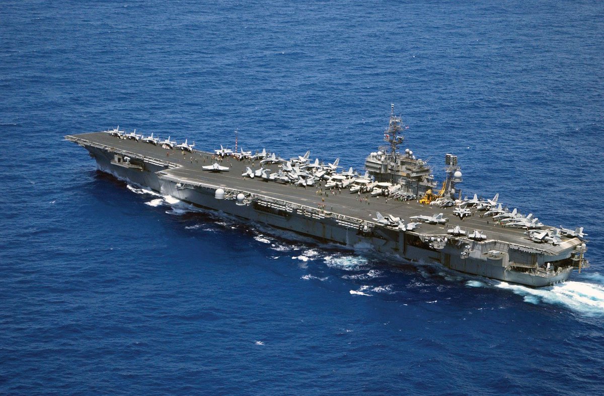 美军超级航母打击群,不是一个浮在水面上的孤零零靶船。是一个高度整合在一起的攻防兼备的作战体系,还包括强大电磁频谱作战能力,并可快速机动,航母打击群打击半径超过上千公里
