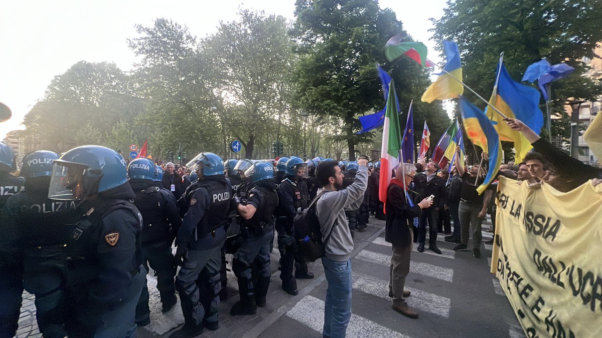 Ci sono stati momenti di tensione, qualche spinta (io NON sono stato coinvolto), poi è intervenuta la polizia. Alla fine, l’ANPI (Associazione Nazionale Putinisti Italiani) ha ottenuto di tenerci fuori dal corteo. 2/5