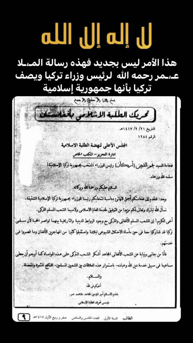 Mullah Umar's letter to Turkey. Calling DEMOCRATIC republic of Turkey as their BROTHERS and praising them.