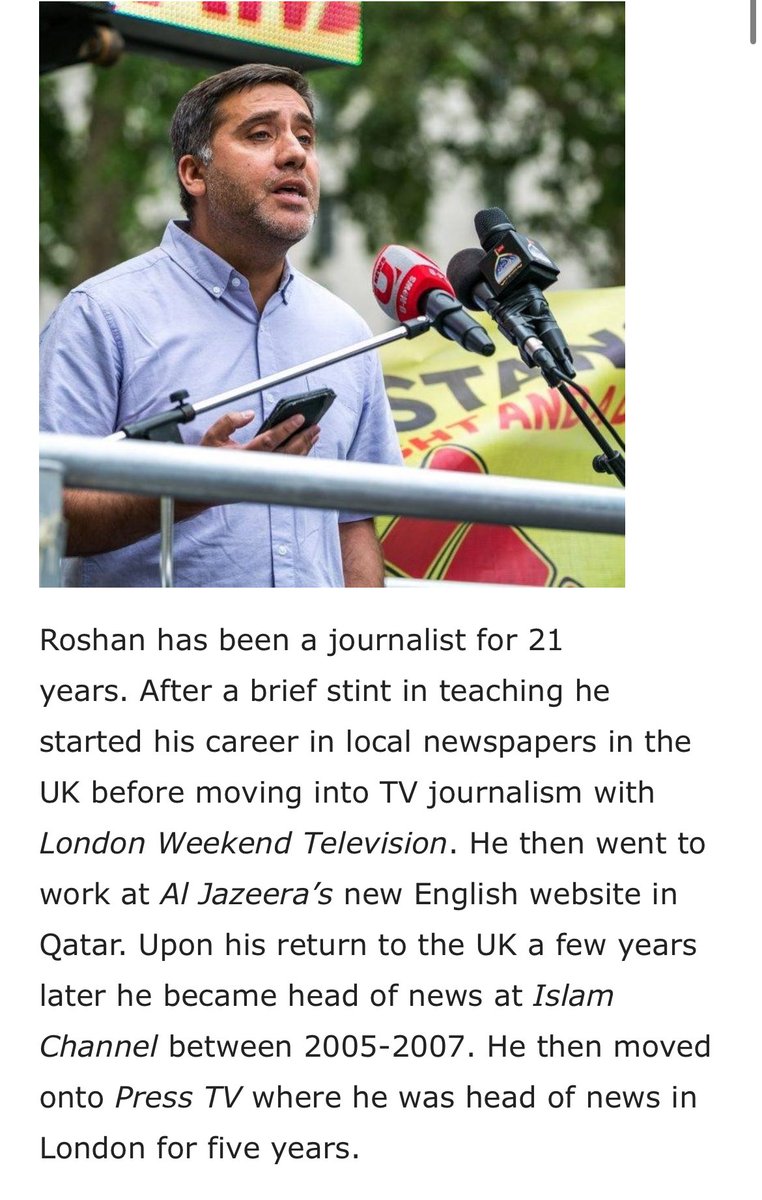 Roshan Salih have worked with PressTV for 5 years, being head of their news in London. He has attended PressTV-linked shows, made content for them, and etc. it’s obvious that he was fully working for them and not under some sort of temporary contract for few months.
