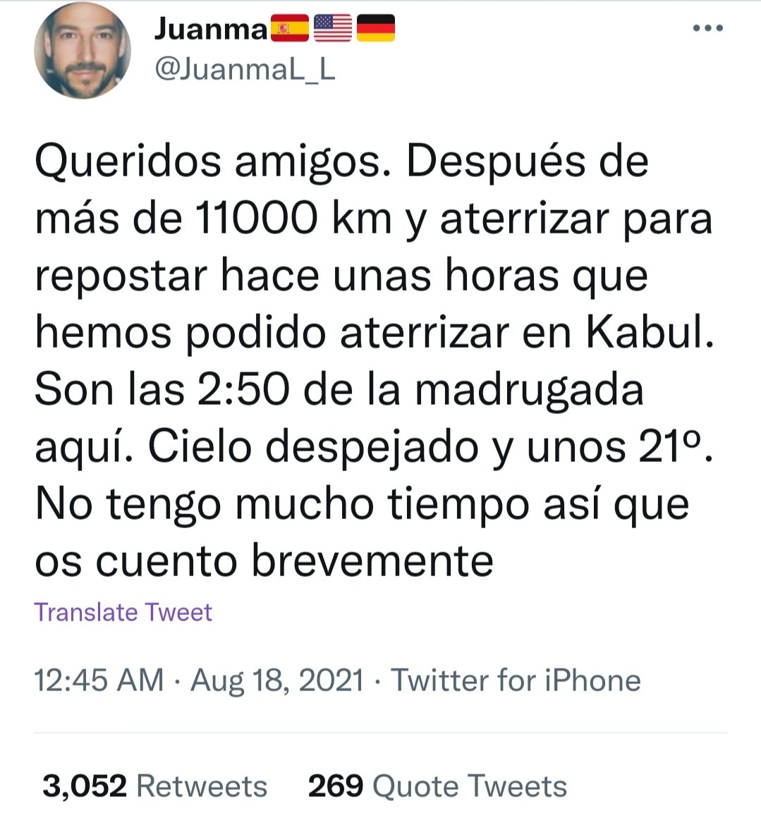 Ayer casualmente, llegué a este hilo y quedé asombrada de la naturalidad con la que este señor recién llegado a Kabul nada más y nada menos, relata que ha ido a rescatar a no sé cuántos españoles. Esa tranquilidad, me hizo sospechar de que algo olía mal.Dentro telenovela 👇🏽👇🏽👇🏽👇🏽
