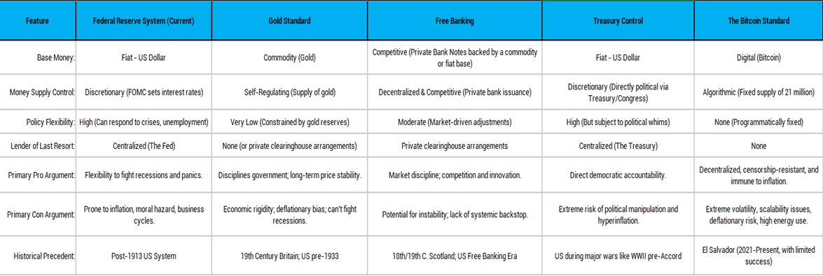 Also, it will confront the monumental cons of abolition, analyzing the logistical gauntlet of undoing such a deeply embedded institution and the potentially catastrophic economic/geopolitical consequences of its absence. And finally, the report will critically evaluate the primary alternatives proposed to replace the current system: a return to the gold standard, the implementation of a free banking regime, the transfer of monetary authority to the US Treasury, or the adoption of a decentralized digital currency like Bitcoin.