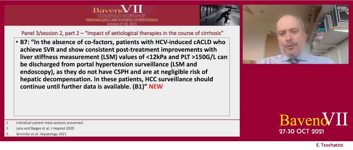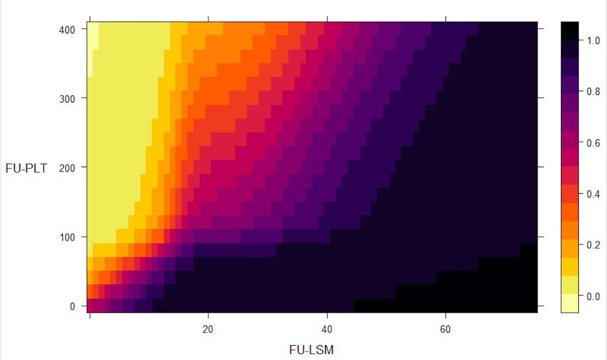 2/5 🦸 The panel performed an individual patient data-based meta-analysis of the #BavenoVII cooperation, repeating NIT (LSM & PLT) post-treatment to assess the probability of CSPH in a cACLD patient after SVR (📸 1 and 2)