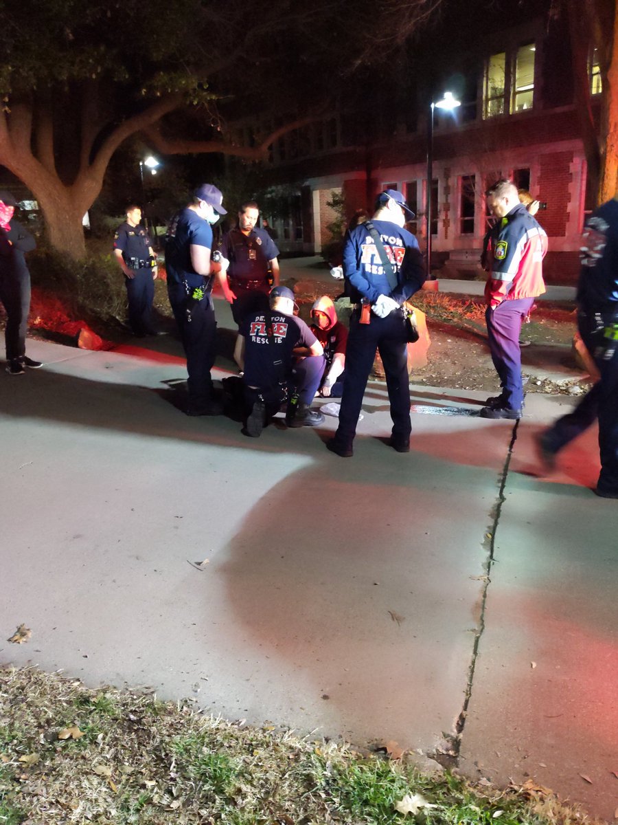 Ambulance has left. The injured person's status is unknown but she was able to get on the gurney with help