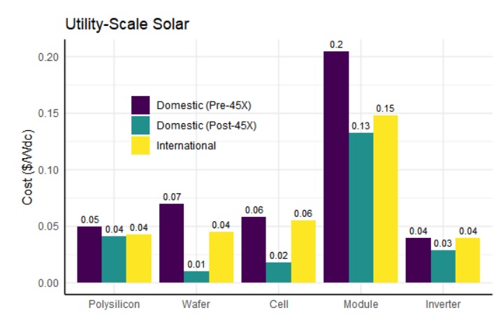 E.g., solar modules with 100% U.S.-made parts will be >30% cheaper than imports.