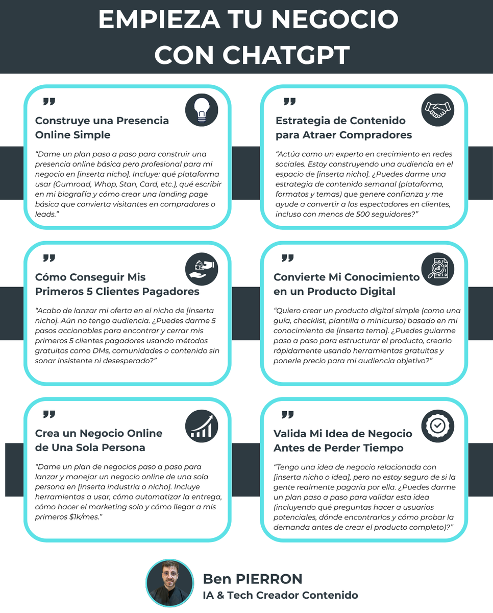 Copia y pega estos prompts para comenzar ese negocio online: 1. Construye una Presencia Online Simple