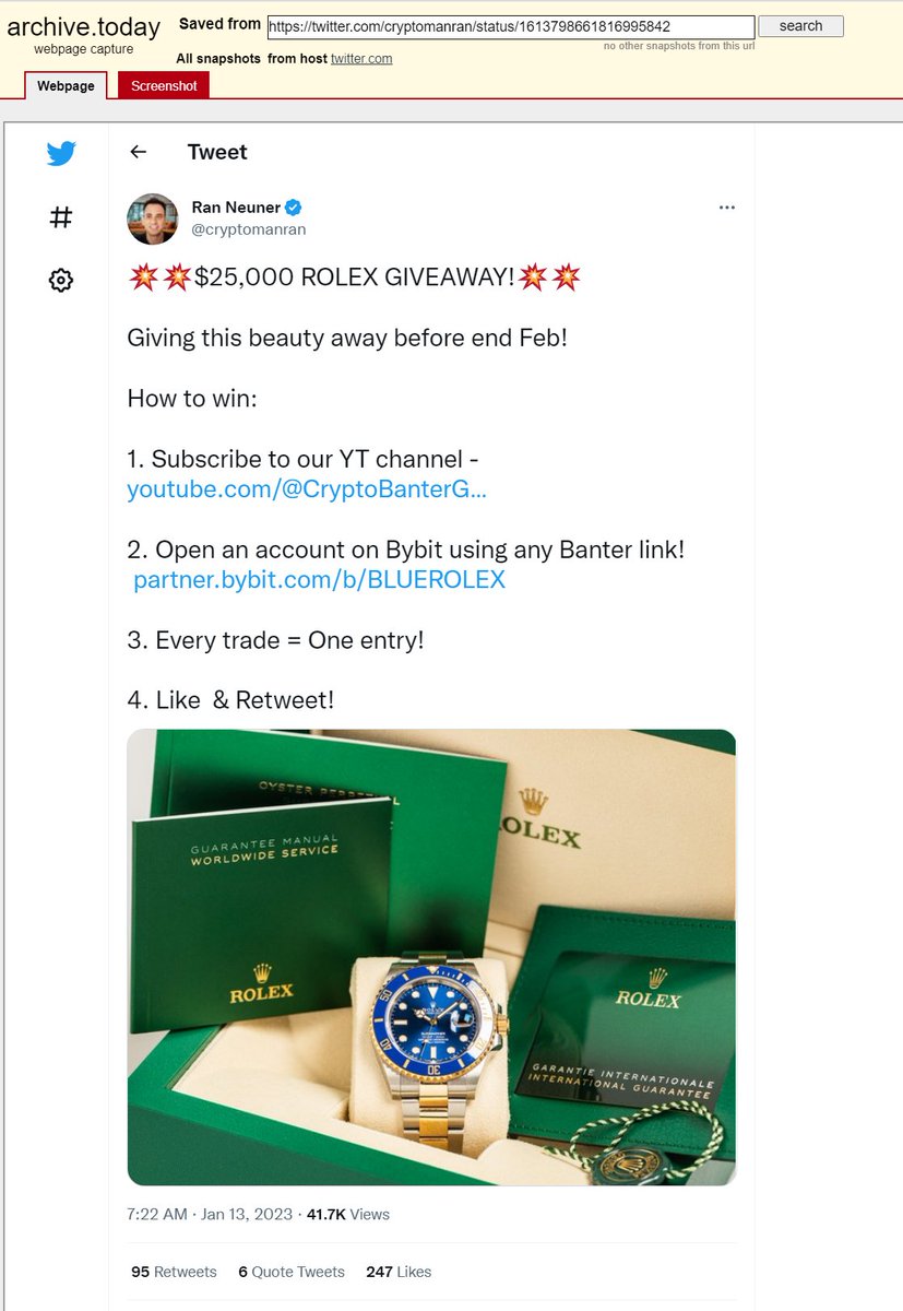 Also of note, Ran Neuner is also promoting openly no-KYC/AML Tether fraud exchanges.