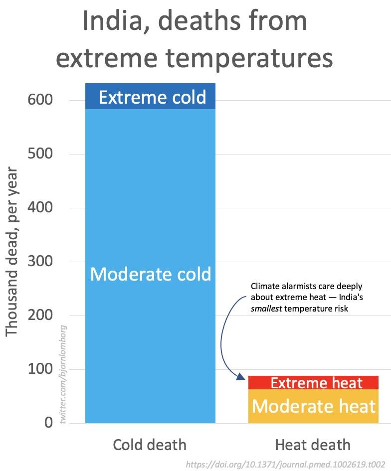 Indeed, across the world, cold deaths vastly outweigh heat deathshttps://x.com/BjornLomborg/status/1596537142678900736