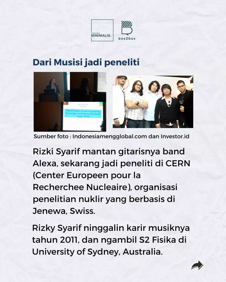Pengalaman Rizki Syarif, mantan gitaris Alexa beralih profesi menjadi peneliti di CERN patut disimak: