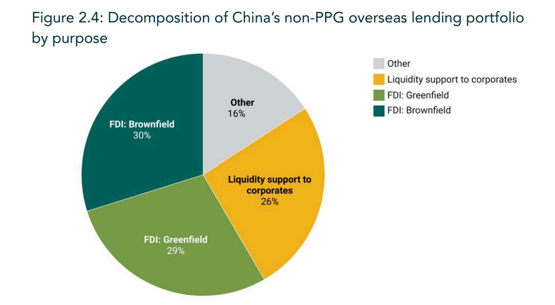 The disaggregated data shows that China isn't just funding publicly guaranteed infrastructure projects in frontier economies/ Africa. Its state banks also do a lot of lending to "private" firms, including loans that back Chinese firms going out