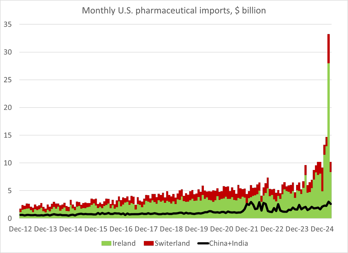 In a sane world of course the US should care about this -- but Trump is already taking credit for the (irrelevant) fall in the bilateral deficit with China, and seems poised to focus his trade policy (ha!) on the non-Ireland EU and Canada ...