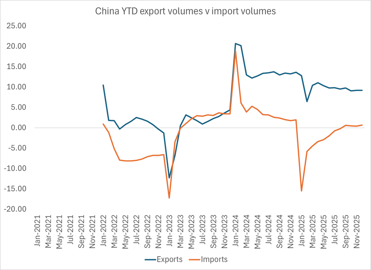 https://twitter.com/adam_tooze/status/2023015687573438840Rhodium for example thinks total growth in 2025 was around 3% -- which would imply that the 1.6 pp contribution from net exports "drove" China's growth