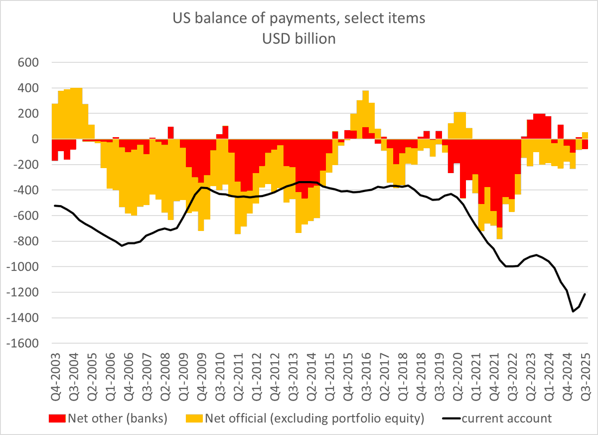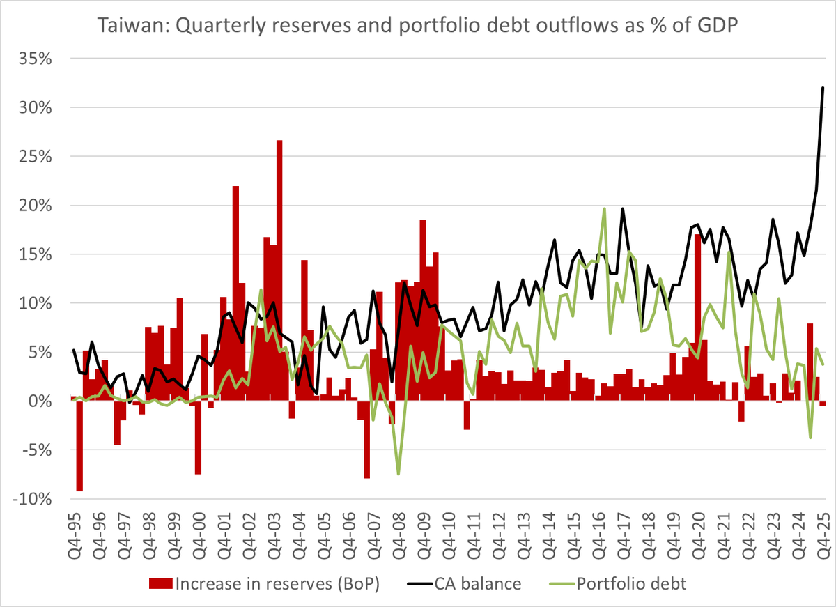 And there is of course a capital flows story -- as the TWD depreciated in q4 in the face of this massive surplus (2x its level in 24), and Taiwan technically sold reserves too!