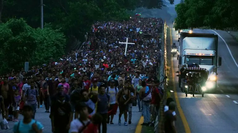 Thousands of migrants of various nationalities are marching toward the US border through southern Mexico