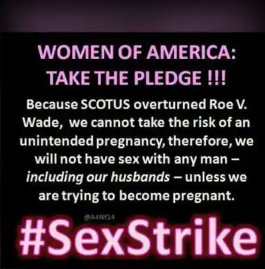 Women in the US are planning to go on a sex strike following the Supreme Court's decision to overturn Roe v. Wade