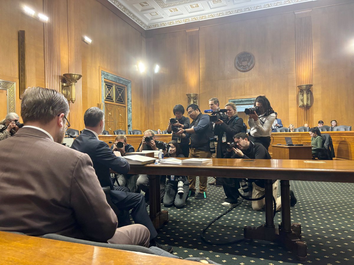 https://twitter.com/ericldaugh/status/2018774793055506699Hearing is off to an odd start with a few protestors in the audience. Took a couple minutes for Capitol police to clear out the scene. Lawmakers looked on the whole time with varying degrees of discomfort.