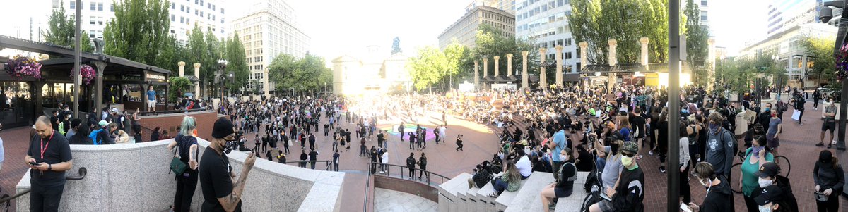 This is the group at Pioneer Courthouse Square. The PEACE truck just arrived. Several hundred people gathered.
