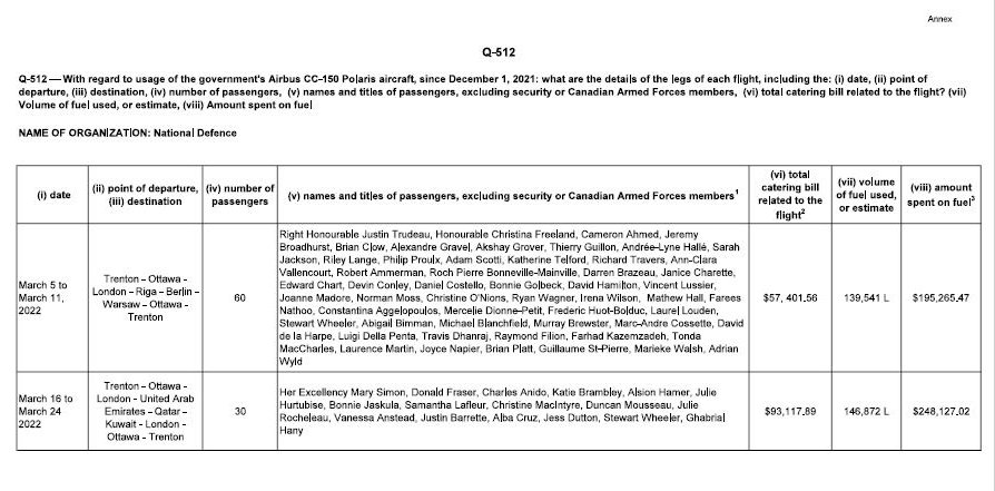 I have flight costs and manifests for Canadian Forces VIP flights btwn Dec. 2021 and April 2022. Some highlights in🧵, but here's my story: nationalpost.com/news/gov-gen-g…