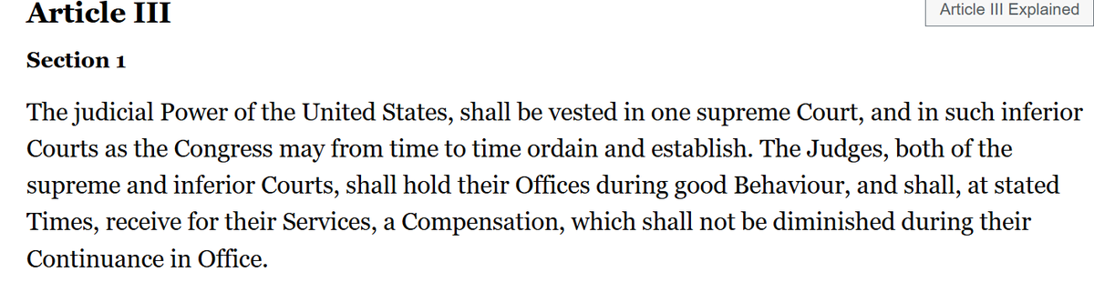 https://twitter.com/lawrencehurley/status/1963559931438584244First, the basics. The Constitution creates only one court--the Supreme Court. It authorizes Congress to create "inferior courts," but does not mandate them. And the judicial power of these subordinate courts is entirely subordinate to the Supreme Court's. 2/