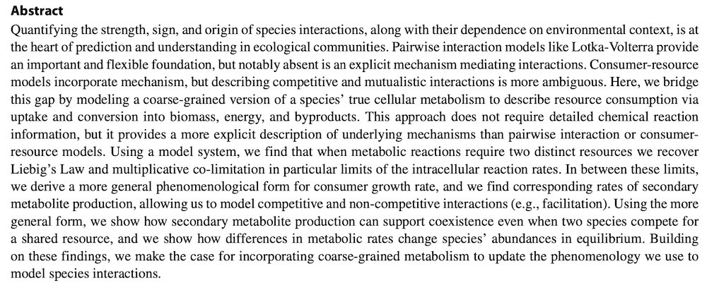 to interactions at the macro scale? @MarioMuscarella +@Jp_odwyer creatively address some of these issue in . They show by building a coarse-grained model of a species’ cellular metabolism several counterintuitive results, one of which is 2/8 tinyurl.com/1ll2hgzq